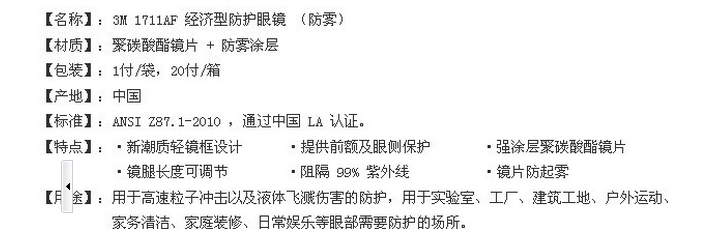 3M 1711/1711AF 防护眼镜